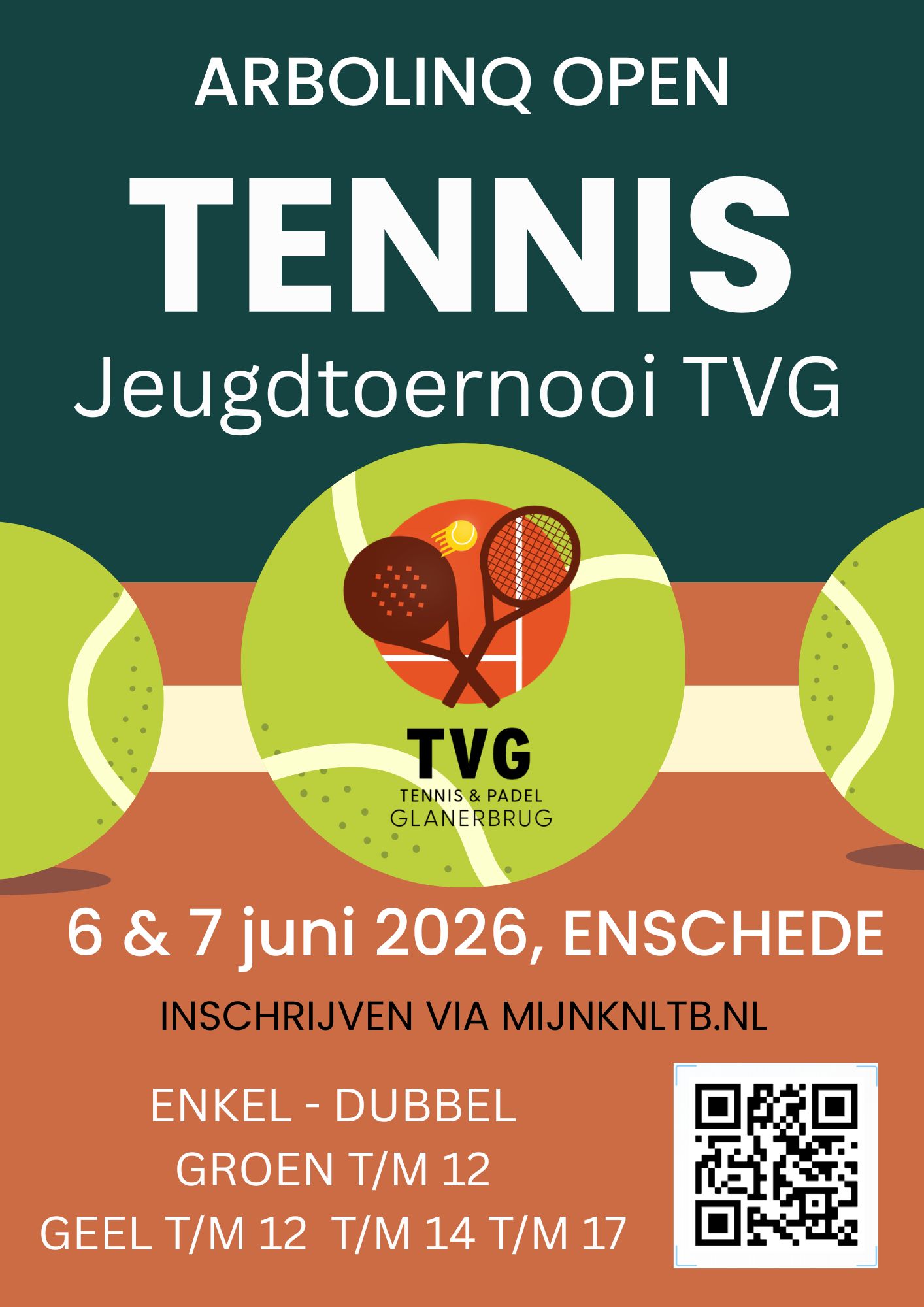 Schrijf je in voor het 4e Arbolinq Open Jeugdtoernooi bij TVG. Na drie succesvolle edities met veel deelnemers, top wedstrijden en mooi weer is de organisatie klaar voor een nieuwe editie in 2026.